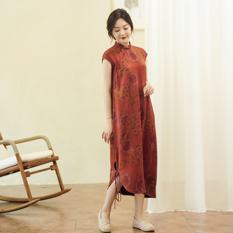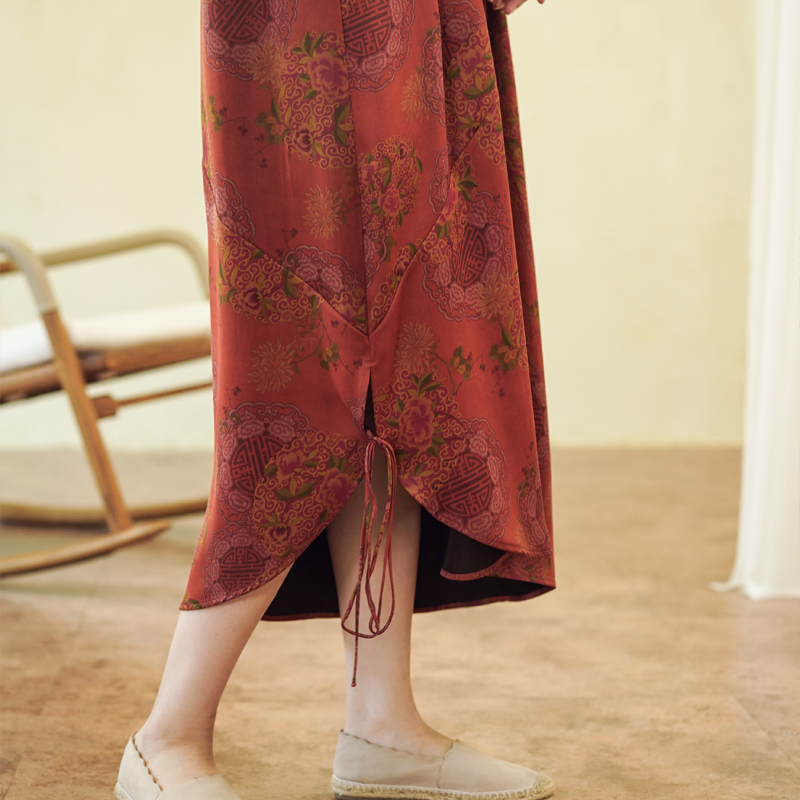 Zhu's original (love as first seen) bifacial satin cloud yarn Chinese gown with loose irregular long version of the dress