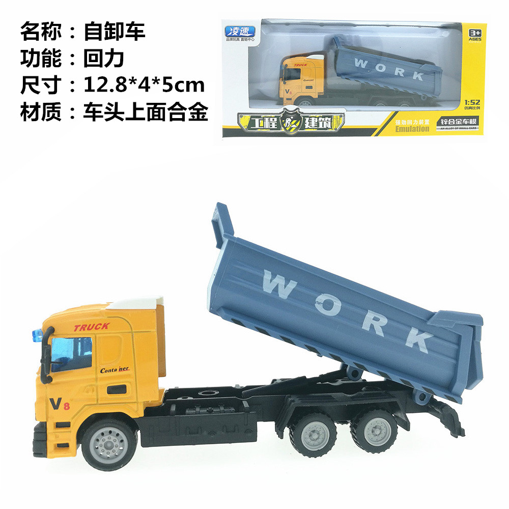 Bulldozer, a boxed excavator, a boxed mixer, a boxed dump truck, a boxed garbage truck, a boxed swing arm garbage truck, a boxed 3 engineering vehicles