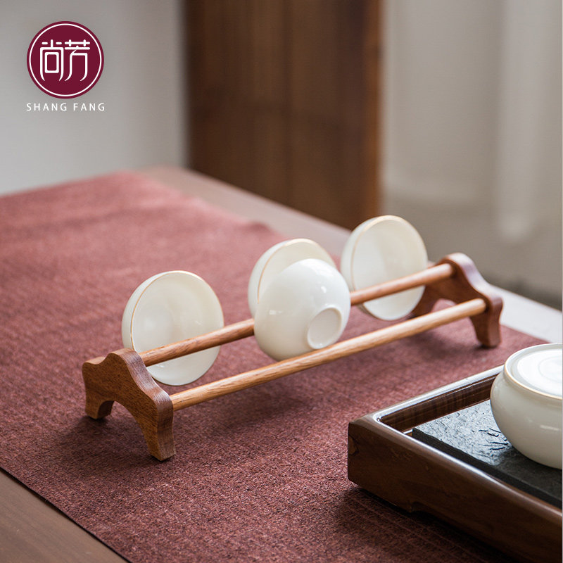 Chamfon Chicken Wings Wood Kongfu Tea Cup Rack Drain Rack Solid Wood Tea Rack Tea Set of Tea Set of the Bay Shelf Bogu Cup