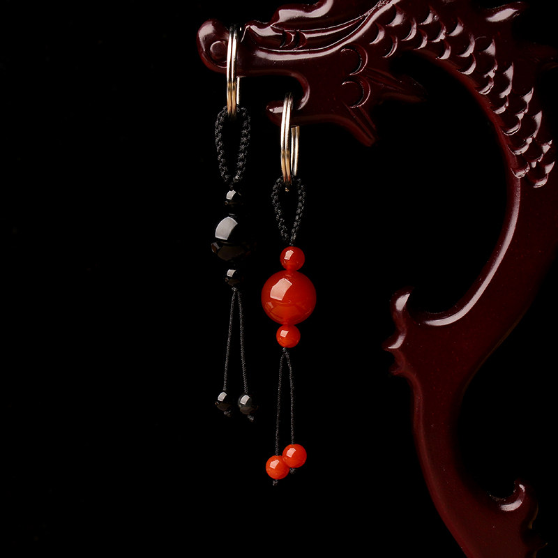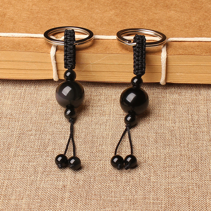 Natural obsidian key chain red agate transfer beads car pendant rainbow eye gold obsidian key chain male handmade