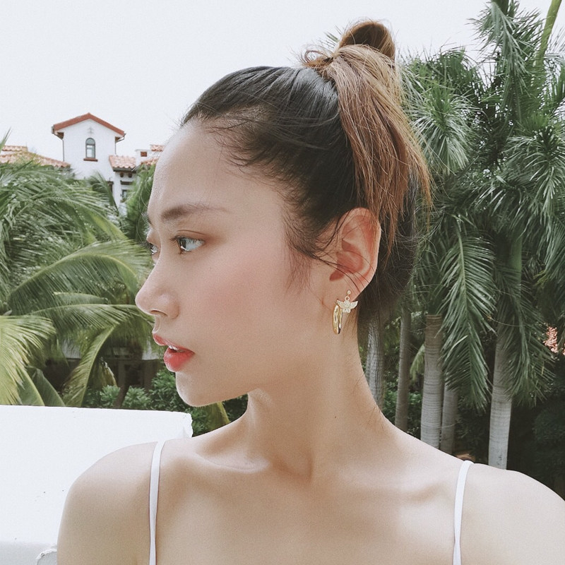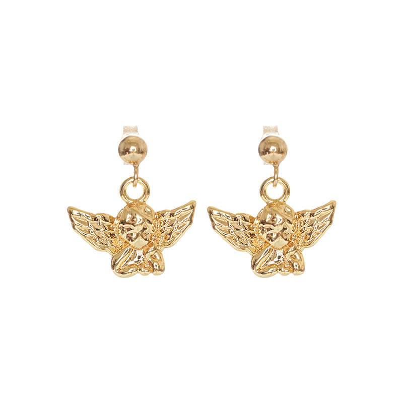 TWOR original hand made for US import 14k Note gold Delicate Little Angel Ear Needle Earrings Female Brief is small 100 lap