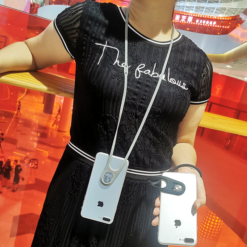 Held for mobile phone hanging rope glass shell hand rope hanging silicone chain adhesive type wrist rope short section No hole applicable Apple male anti-loss sling personality creative detachable one rope three-button hanging neck