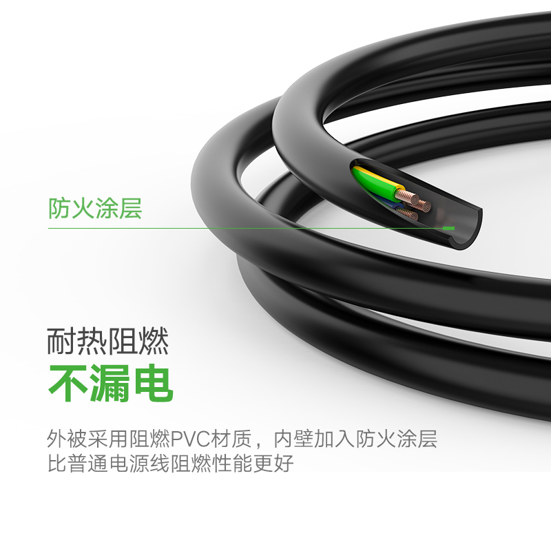 Green-linked computer power cord three-hole desktop host display screen main shell kettle rice cooker universal with plug