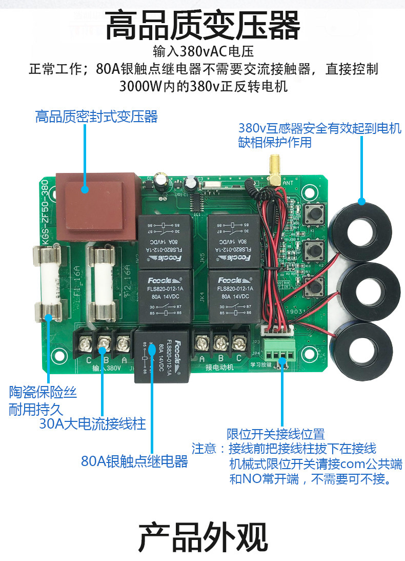 Greenhouse roller shutter machine remote control switch 380v forward and reverse motor remote control reverse fence machine invalid remote control controller