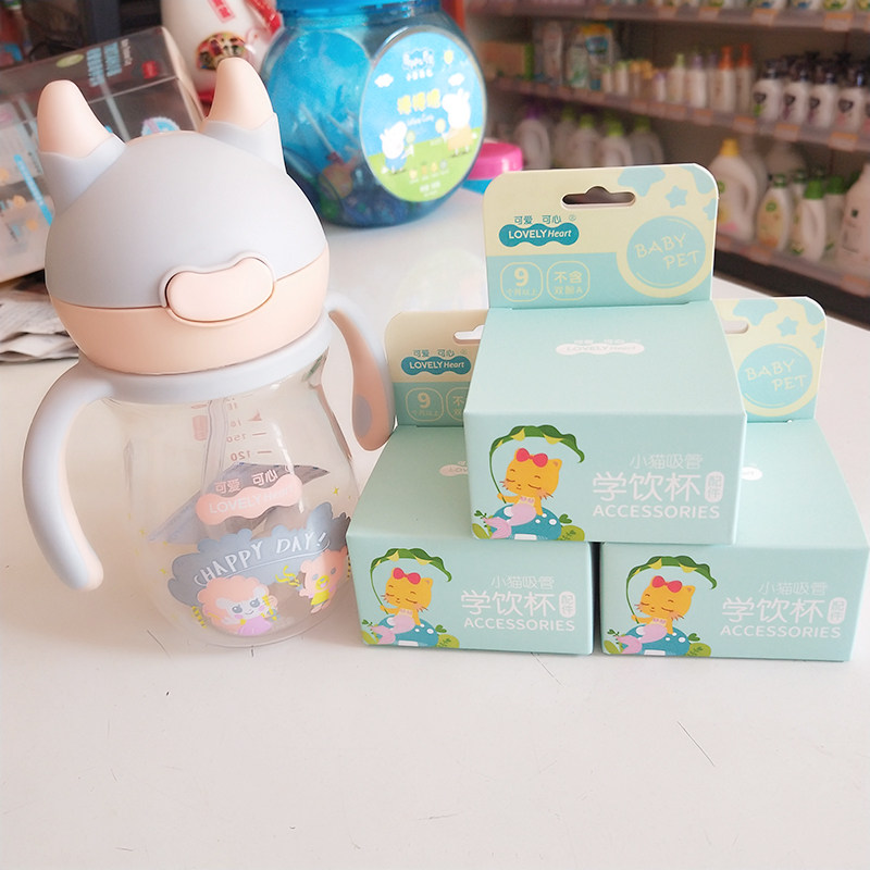 Cute hearty kitty Autolearn drinking cup accessories straws for more than 9 months