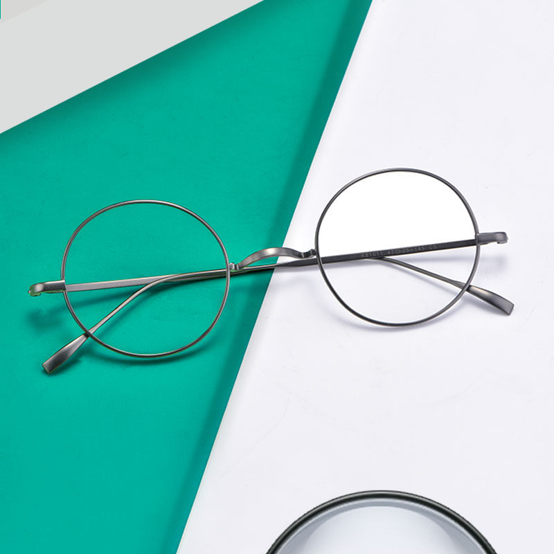 Retro pure titanium without nose and round frame glasses female nearsightedness glasses with degrees round Korean version wave radiation-resistant blue light