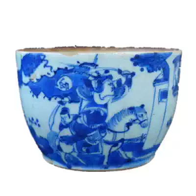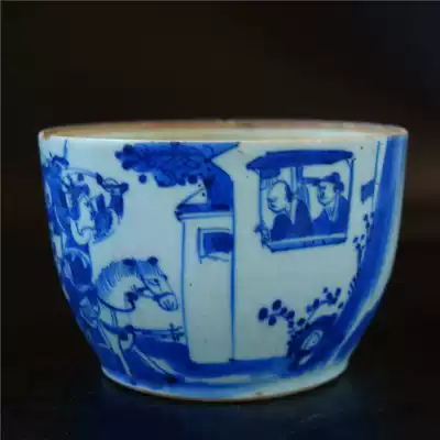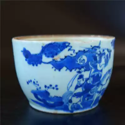 Xiang=Quan Qing mid-century blue and white figure cylinder mouth small nibble grain-free porcelain Ceramic literati porcelain art collection
