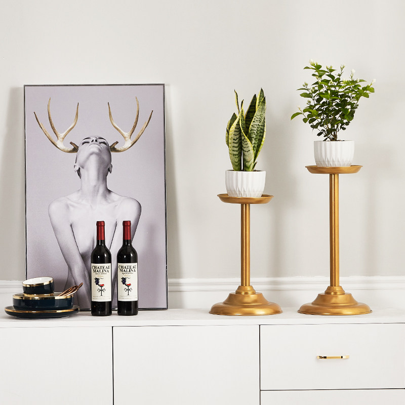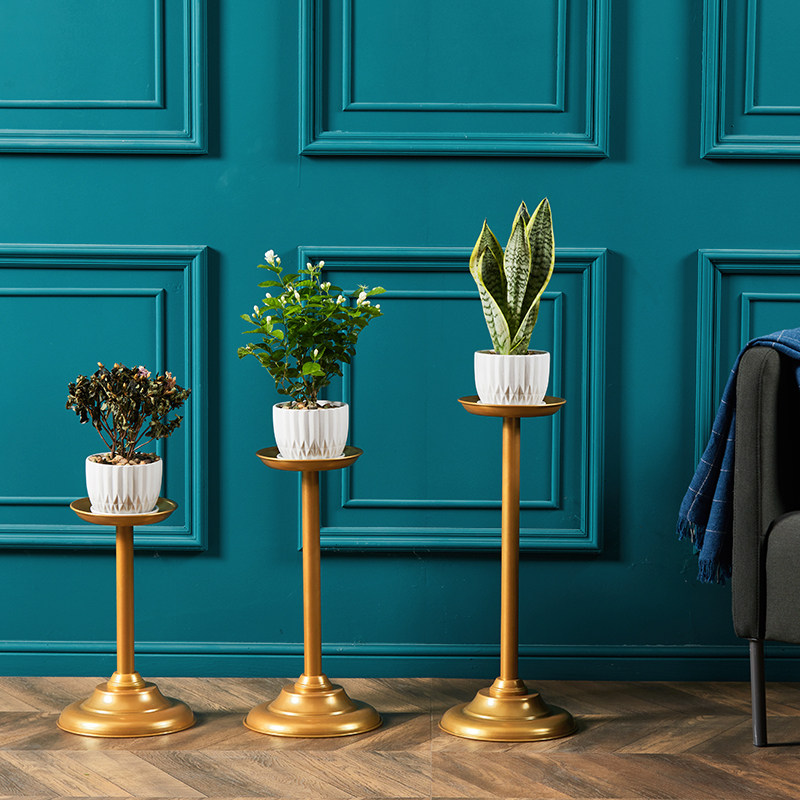 Floor-to-ceiling net red flower stand flower pot stand Nordic simple wrought iron golden flower stand green dill stand Roman column metal candle holder