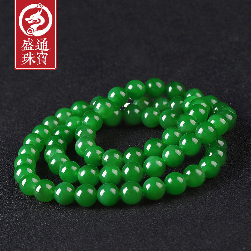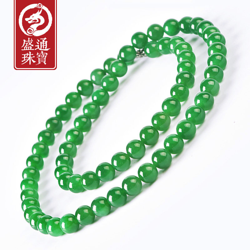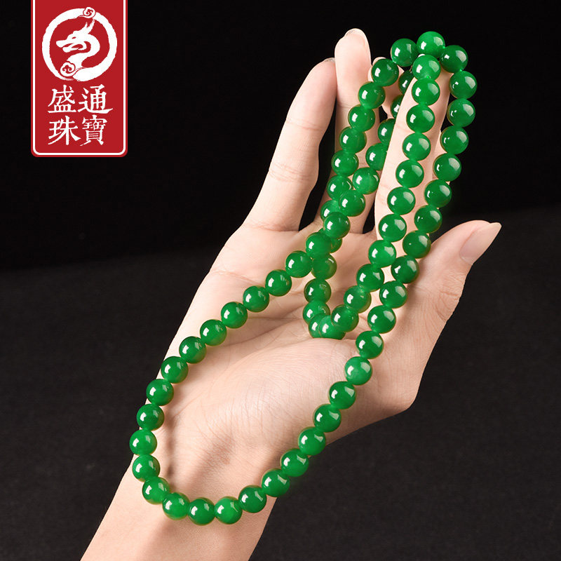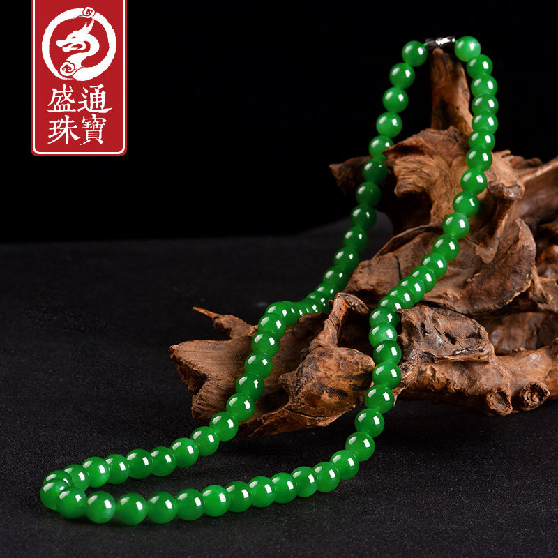 Shengtong Jewelry Natural jade Hetian Jade Spinach green Jasper Necklace Male extended bead necklace with certificate