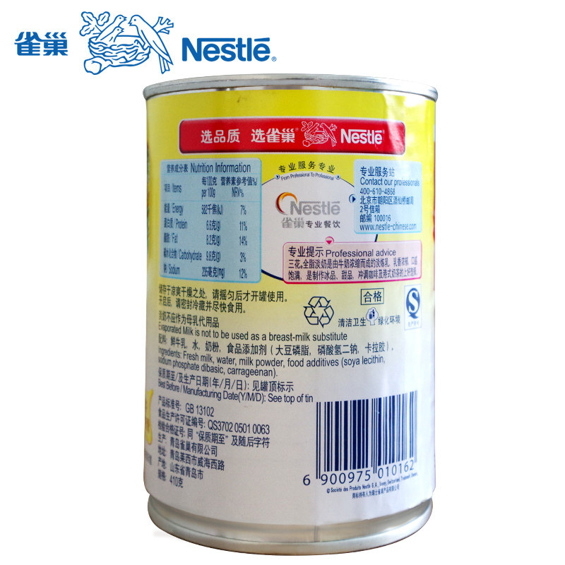 Nestle Sanhua full-fat evaporated milk evaporated milk condensed milk coffee milk tea dessert cake baking ingredients 410g*48 cans