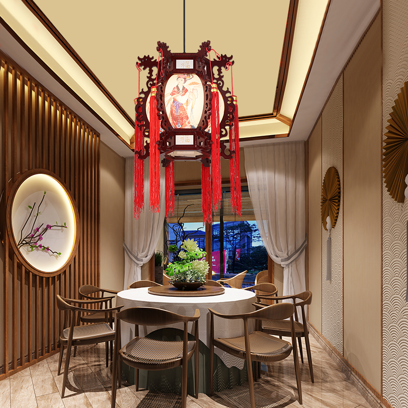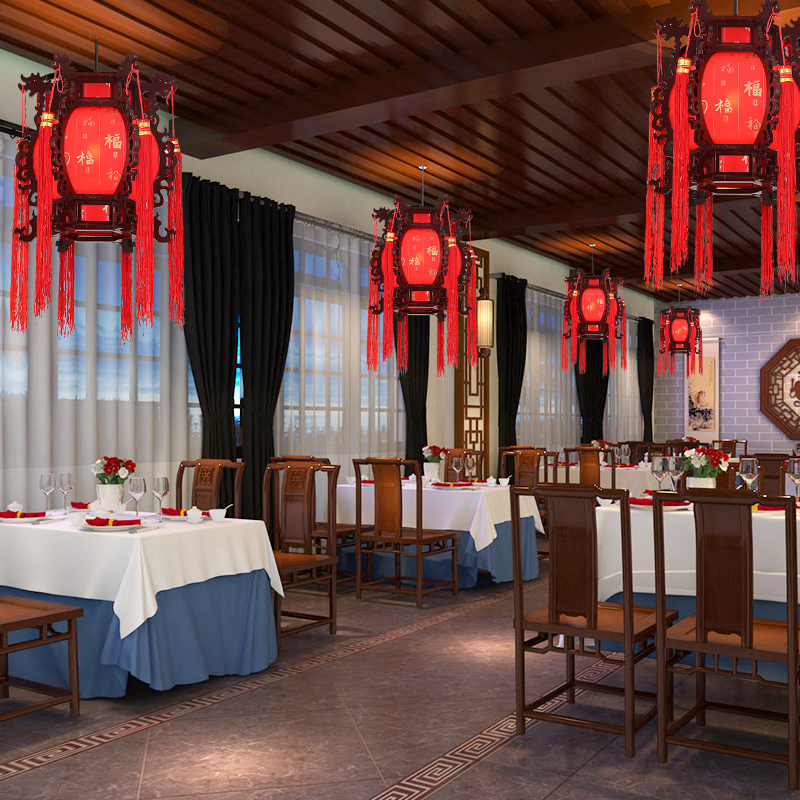 Chinese style small chandeliers Chinese Wind Tea House Dining Room Lamp Modern Chinese Fire Pot Shop Imitation Ancient Sheep Leather Walk Road Lantern Lamps