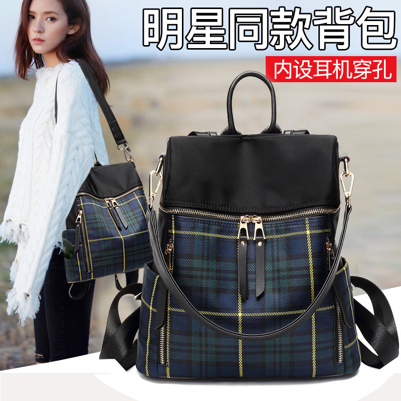 European Station Stars with Waterproof Plaid Double Shoulder Bag Women Canvas Bag TRAVEL BAG GENUINE LEATHER STUDENTS BAG