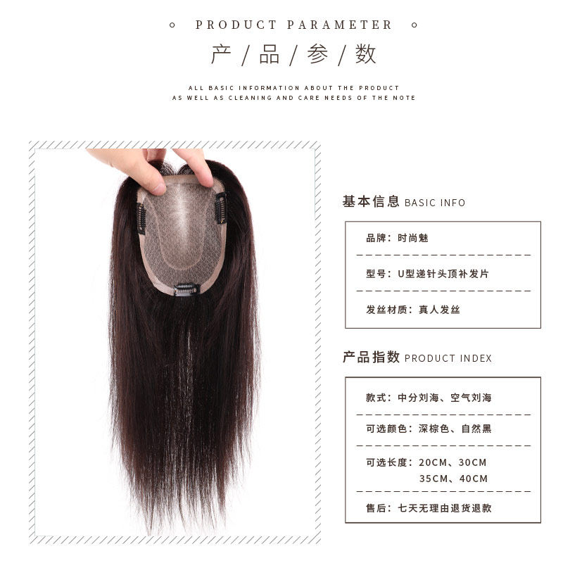 Fashion Phantom Local U-Type Delivery Needle Top Patch Hair Girl Real Hair Shade White Hair Block Patch Hair Cover Light Thin Wig Sheet