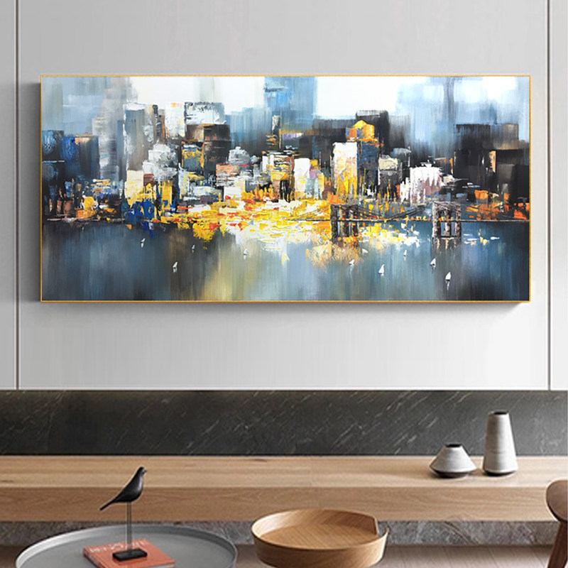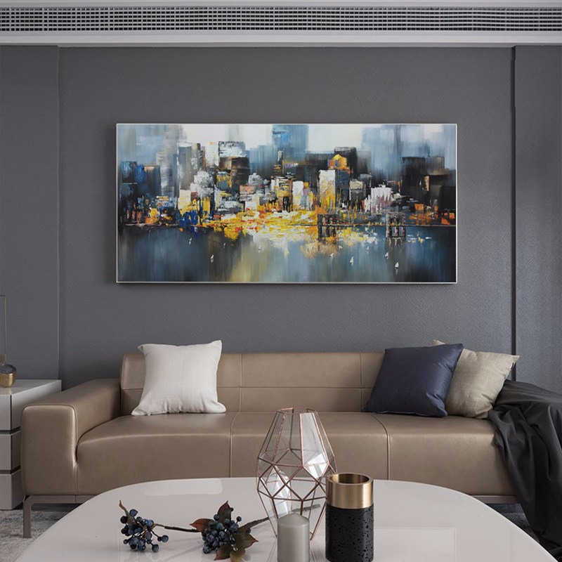 Pure hand-painted oil painting living room hanging painting sofa background wall decorative painting horizontal version handmade mural modern American large size