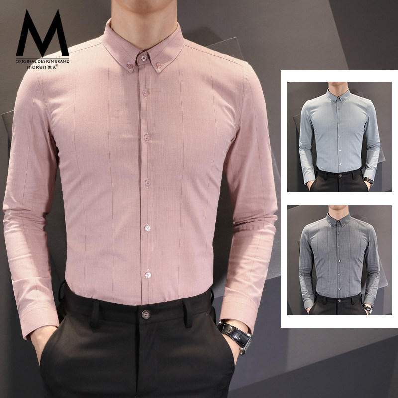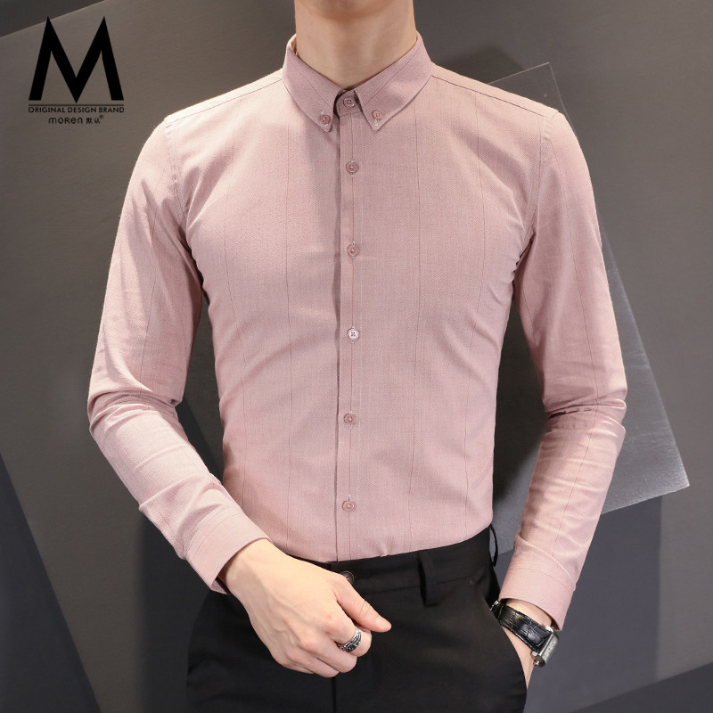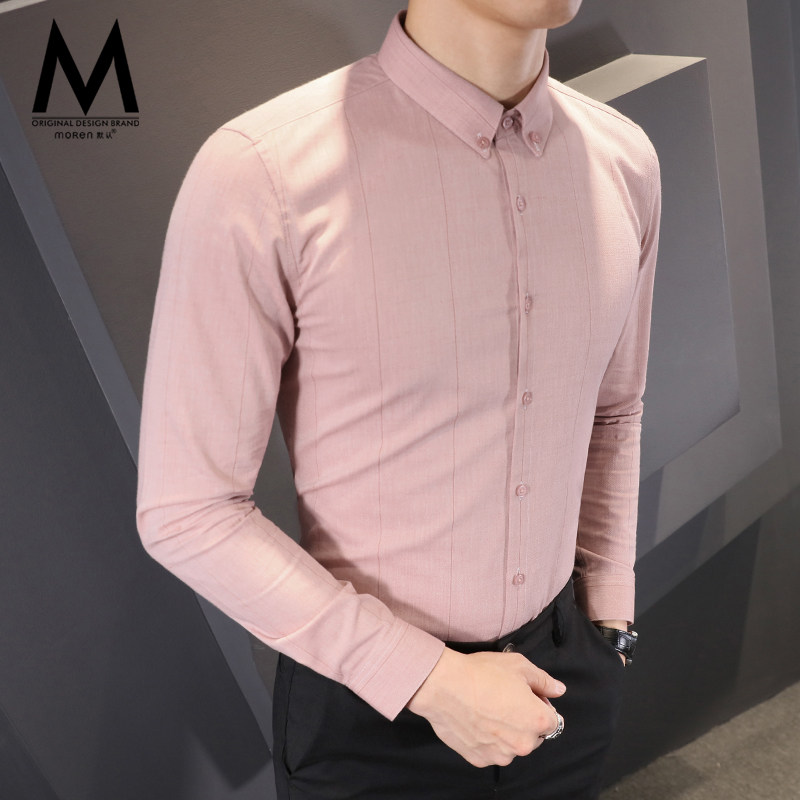 2020 summer new pink shirt men's long-sleeved inch shirt Korean slim men's shirt business casual trend