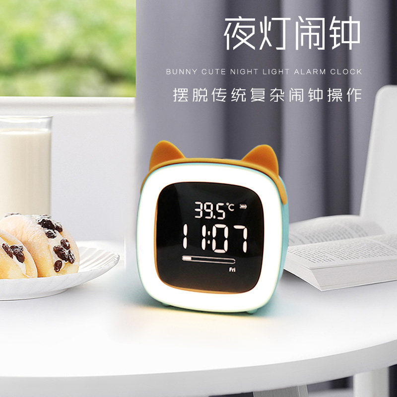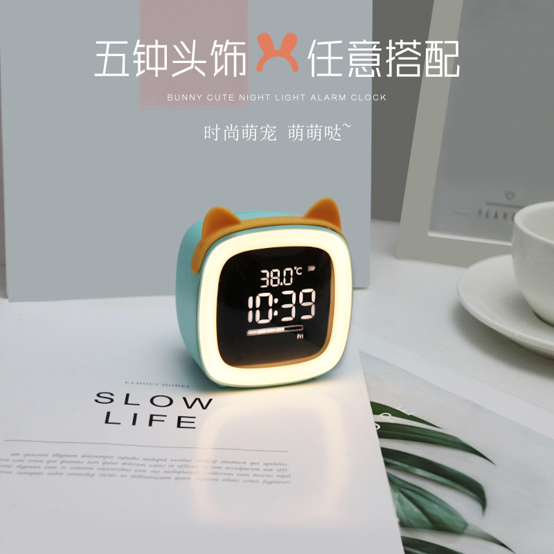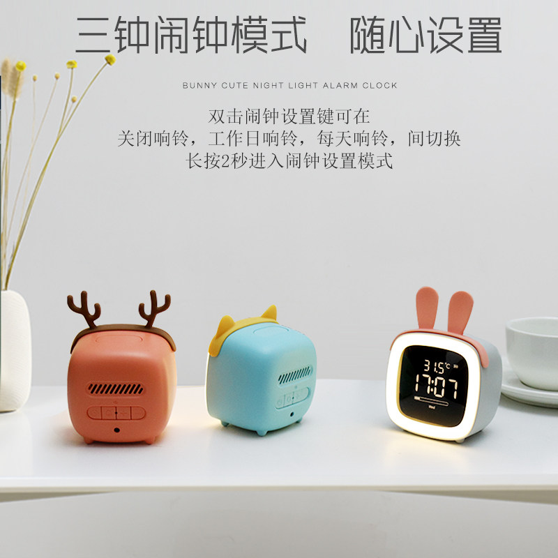 Alarm clock for students with female creative mute cute cartoon small clock for children's bedroom bedside intelligent charging multi-function