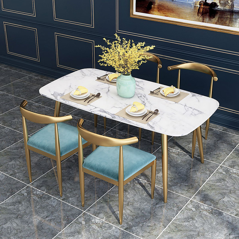Modern minimalist small family marble dining table rectangular table Home Nordic dining table and chairs Composition One table six chairs