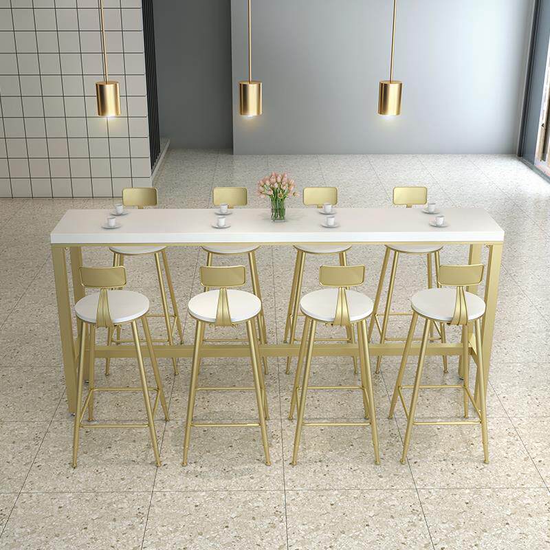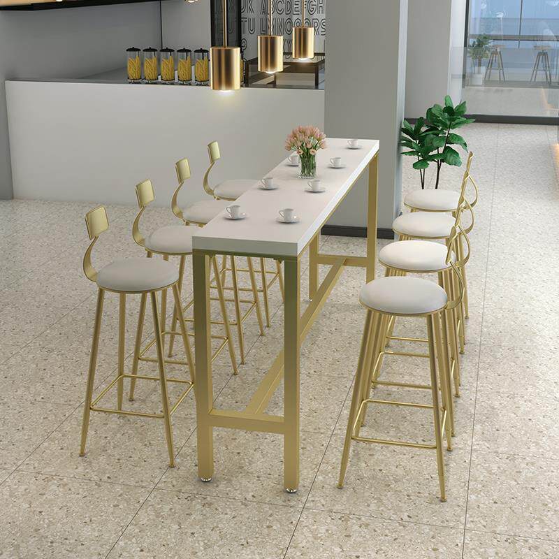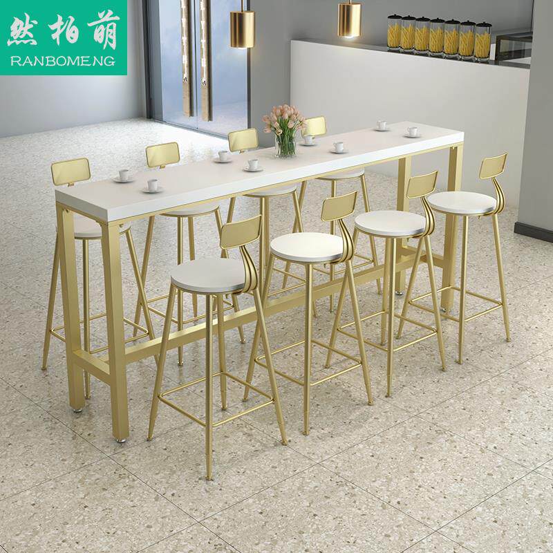 Nordic Solid Wood Bar Table Domestic Bar Milk Tea Shop Café High Foot Table Minimis Wall Strip Table And Chairs Combination