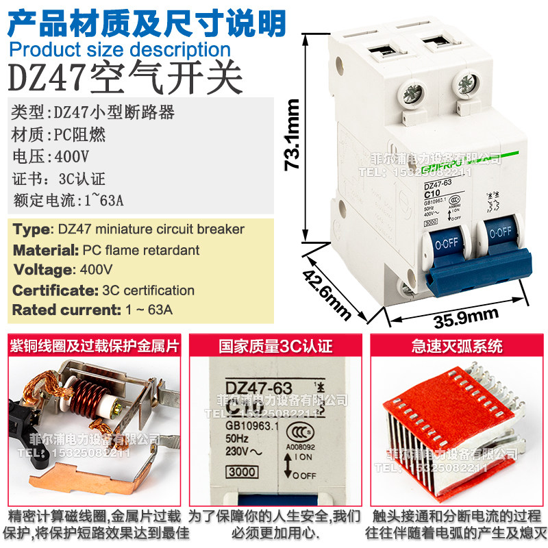 Industrial Temporary Distribution Cabinet Small Breaker DZ47-63A Air Switch 1P2P3P4P 10A 16A-32A
