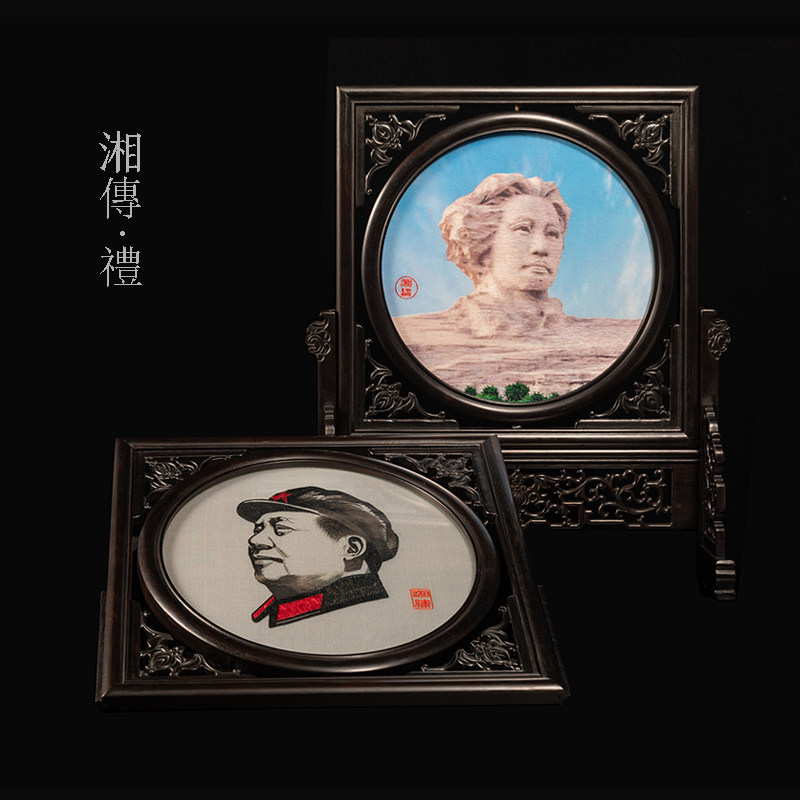 Xianghuan original pure handmade double-sided embroidery Mao Chair like Purple Light Sandalwood Pendulum with double-sided table screen embroidery Gift Xiang embroidery