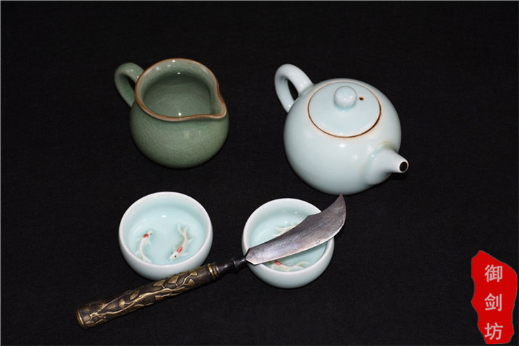 Guan Gong Prying Tea Knife Damascus Hundred Refinement Pattern Steel Tea Needle Tea Cone Black Tea Knife Pu'er Tea Knife Tea Set Accessories