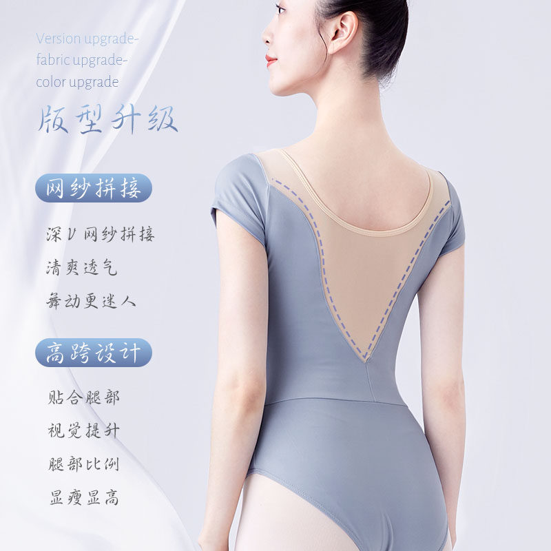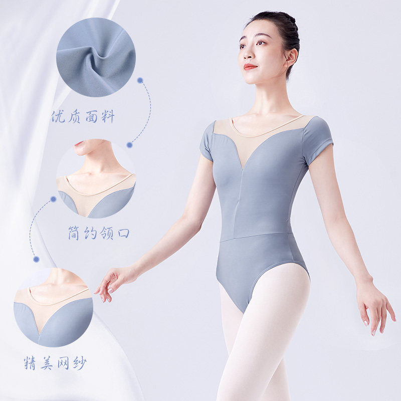 Dance suit female ballet practice suit adult autumn short-sleeved one-piece suit teacher body art test base training gym suit