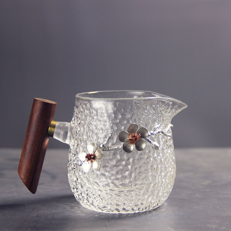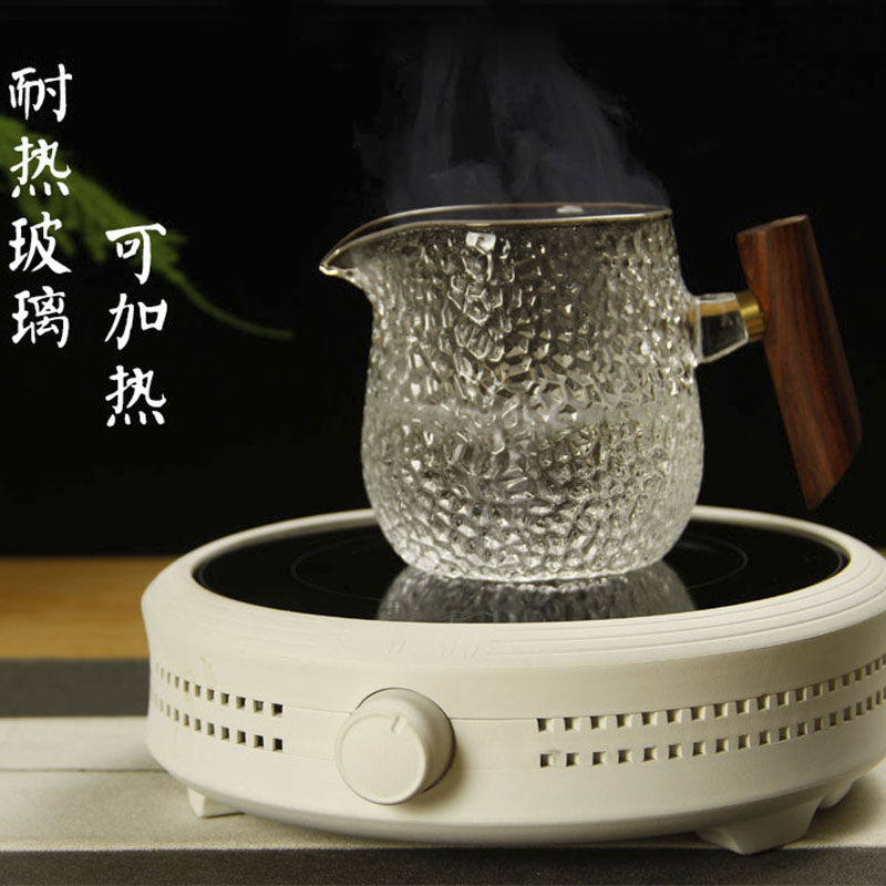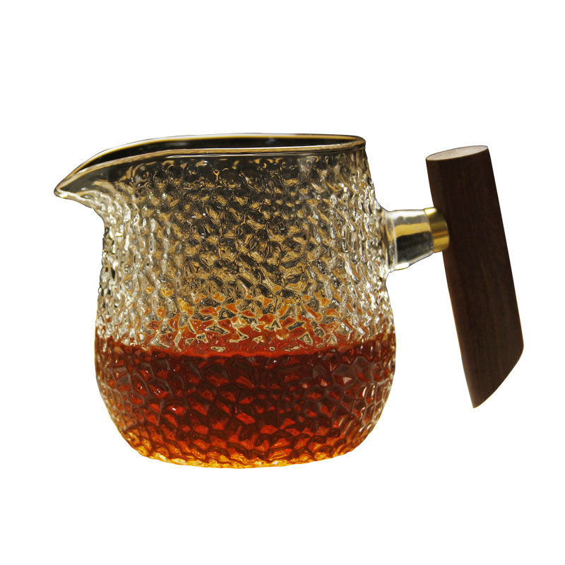 Heat-resistant glass hammer pattern fair cup pouring tea male cup wooden side handle tea dispenser tea cup with glass even cup tea sea