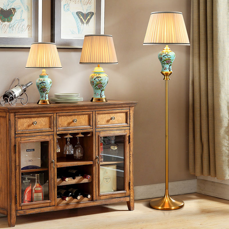Eurostyle Living Room Villa Hotel Handpainted Flower Bird Ceramics Floor Lamp American Book House Bedside Wedding Celebration Floor Lamp