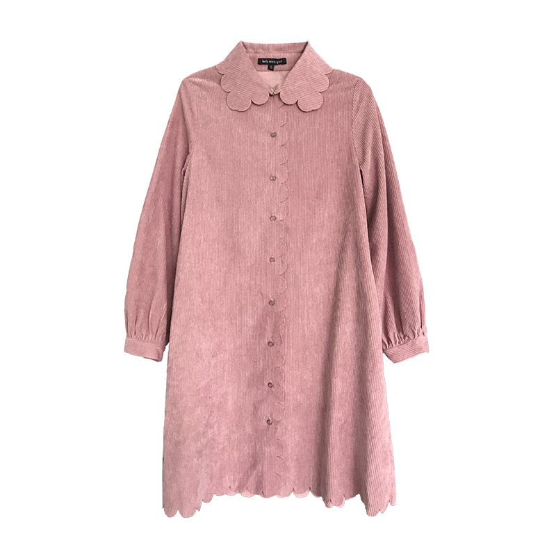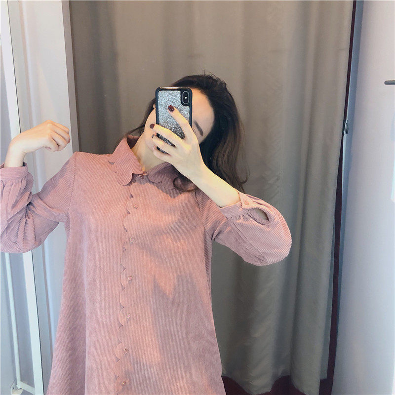 (Pet powder welfare) pink shirt dress women fall 2021 new waist thin temperament skirt
