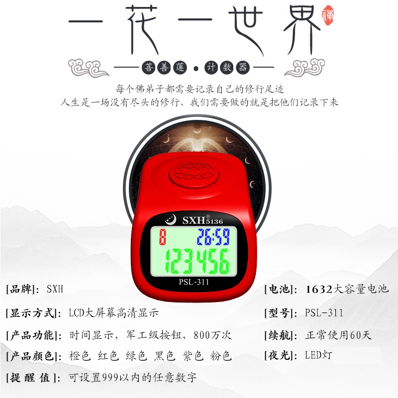 New special price intelligent eight-channel Buddha counter ring LED luminous lock sound reminder six-digit point