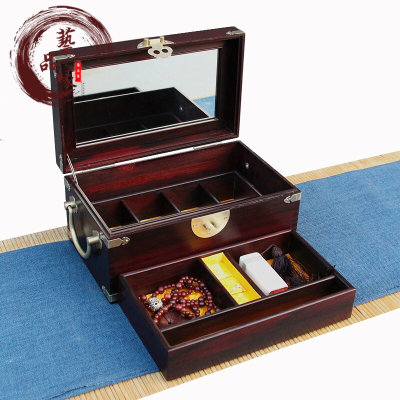 Mahogany Jewelry Box Solid Wood Big Leaf Rosewood Jewelry Box Cosmetic Box Jewelry Storage Box with Lock