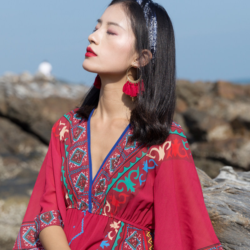 Ethnic style earrings Bohemia tassels long women's retro vacation style earrings Yunnan travel accessories