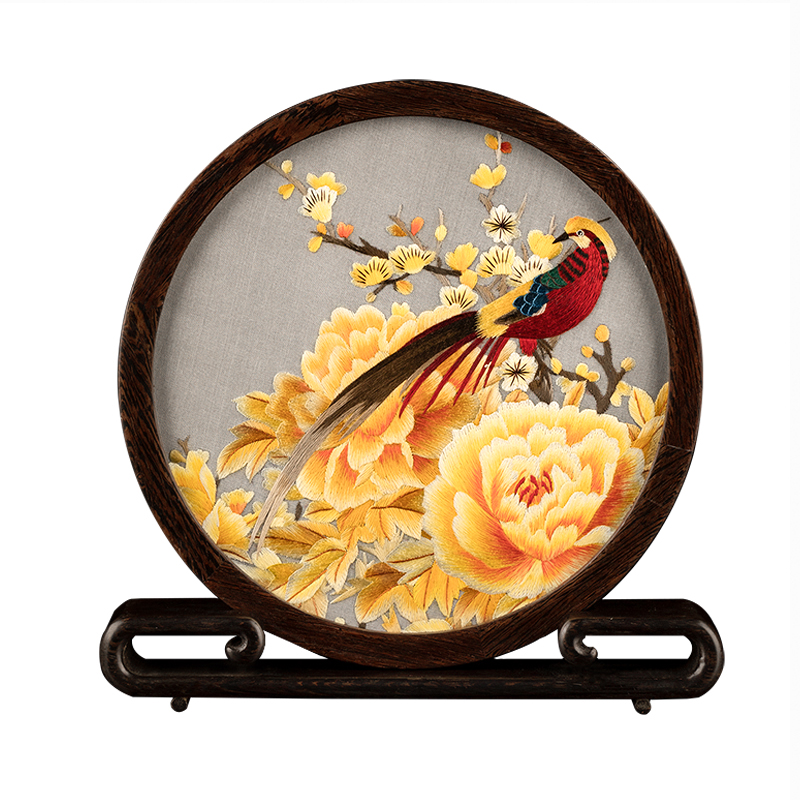 Xiang Chuan Li Xiang embroidery hand embroidery double-sided embroidery bedroom study table countertop round screen ornament new Chinese art gifts