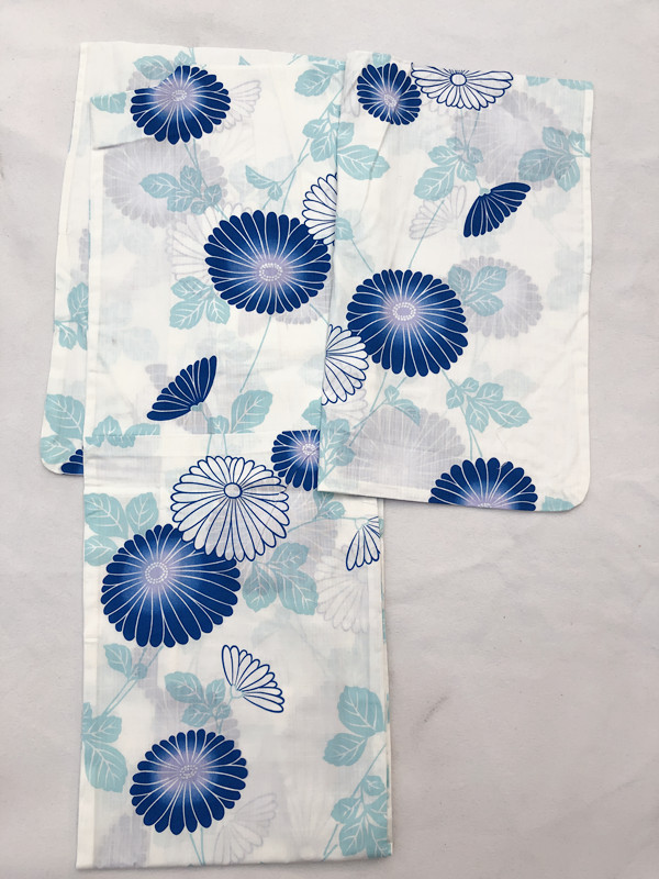 Woman's full cotton outlet Japan kimono bathrobe with light base blue chrysanthemum