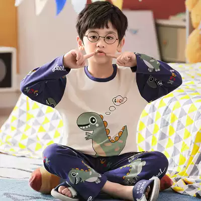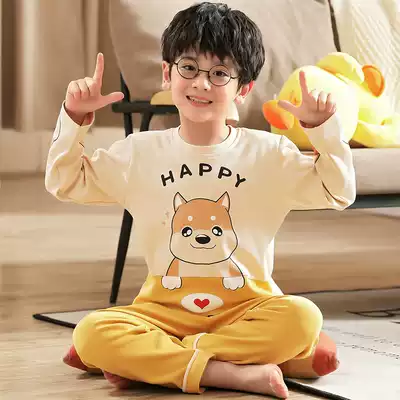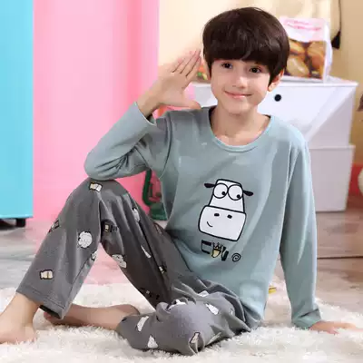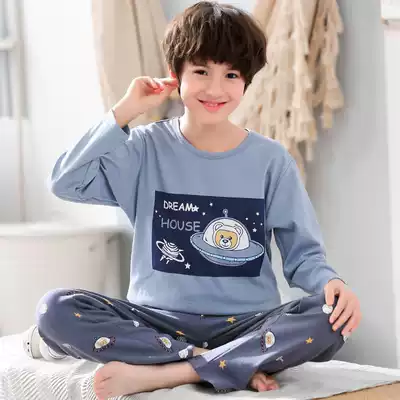 Spring and autumn long-sleeved children's pajamas boys cotton cartoon children baby middle school children home clothes boys cotton