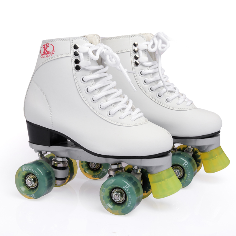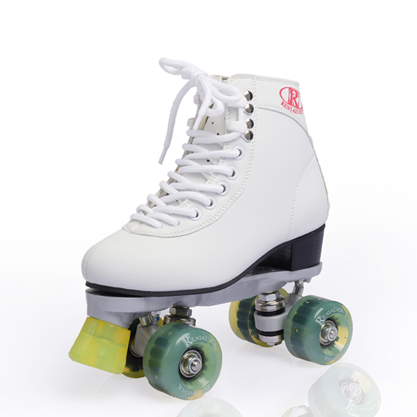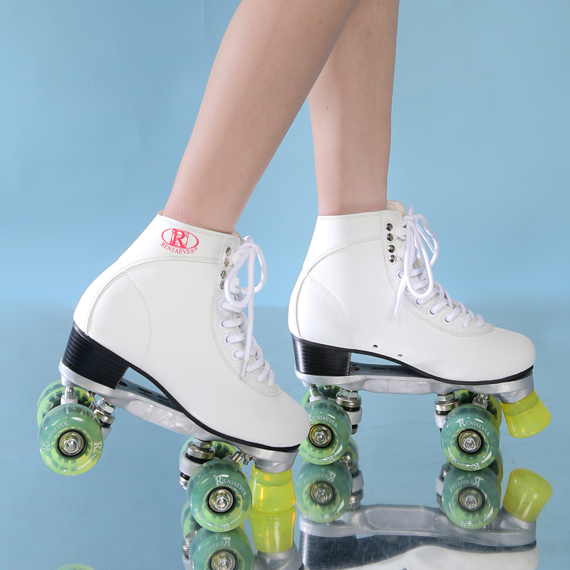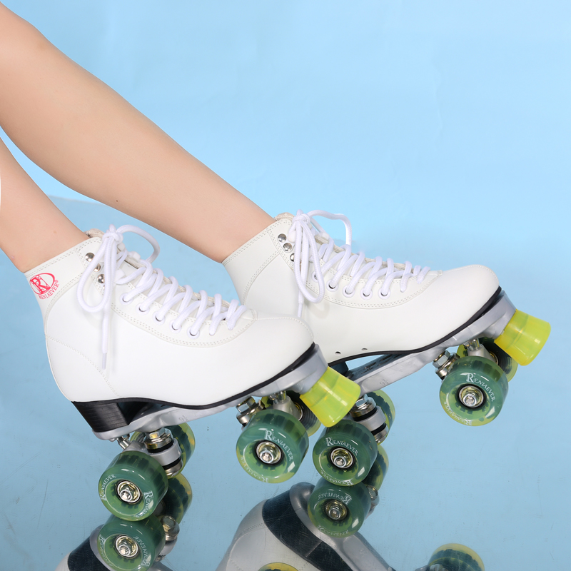 New 4 - wheel sneaker white shoes green flash wheel double - row ski ski pulley shoes four rounds