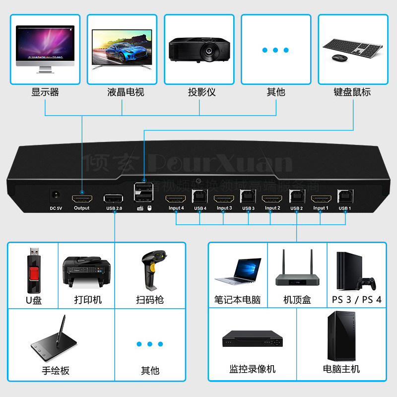 hdmi sub-screen 4 in 1 out 4-picture divider 4-mouth usb synchronous seamless kvm automatic switching of the same screen