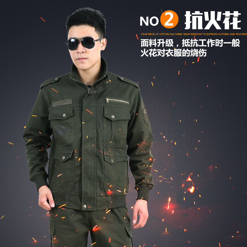 Abrasion-proof working clothes suit men's spring autumn thickened labor conserved anti-scalding electric welding tooling steam repairing workers' labor all cotton-Taobao