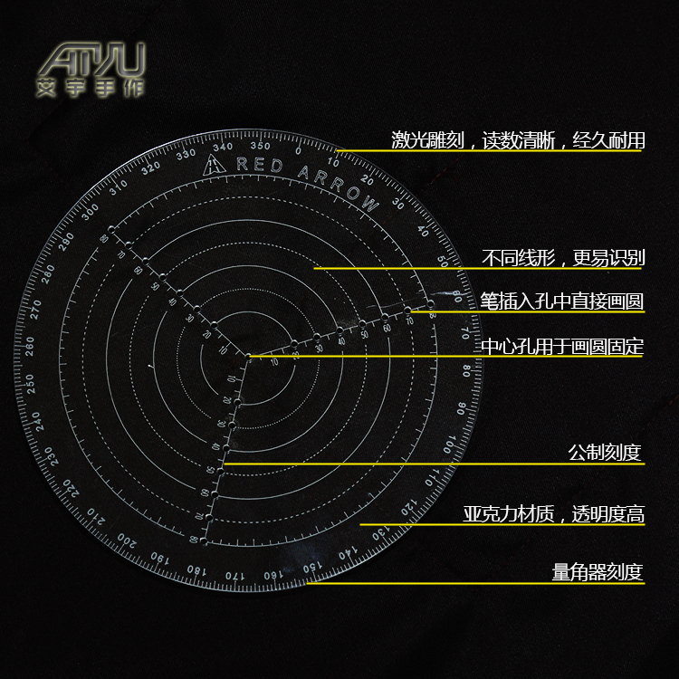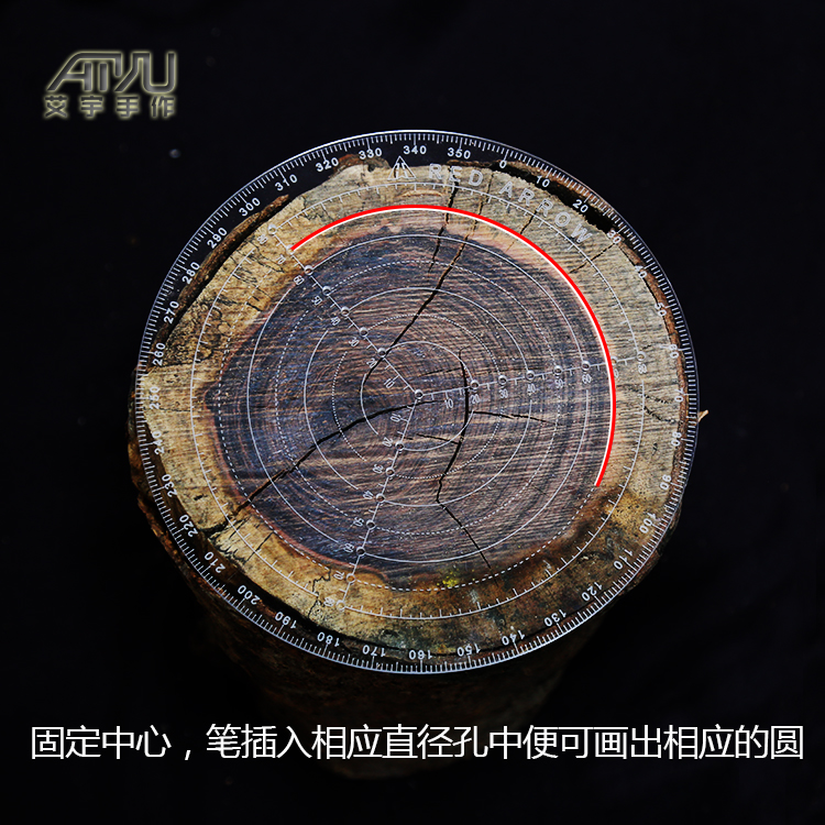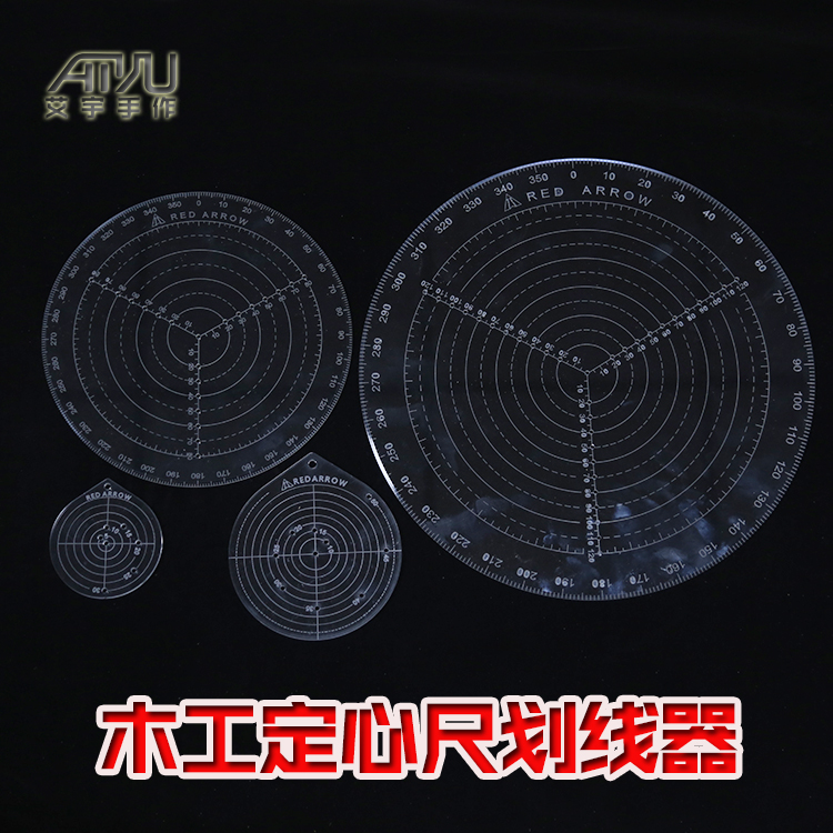 Red Arrow Acrylic Centering Ruler Boutique Wood Screwing Woodworking Center Protractor Diameter Measuring Scribe Round Ruler
