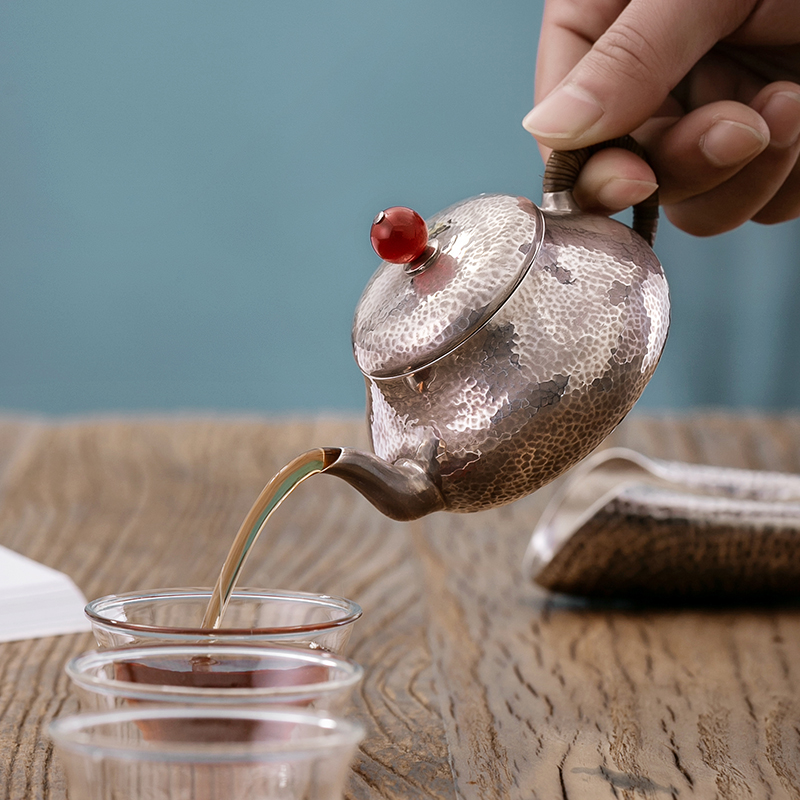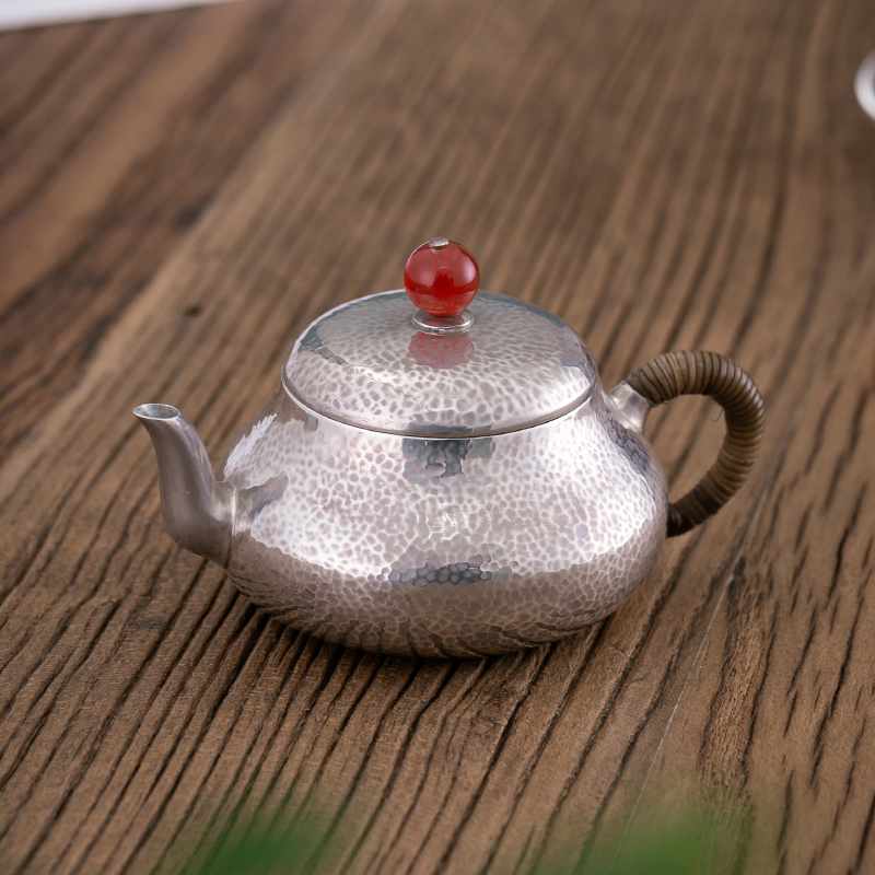 8 silver friends Bian flat off silver teapot 999 pure silver bubble teapot home small teapot single pot pure handmade tea road kettle
