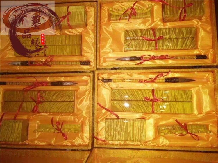 Golden silk nanmu study four treasures pen holder town ruler brush pen holder big leaf nanmu water ripple town ruler solid wood monolith