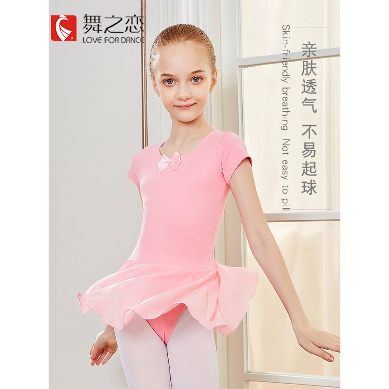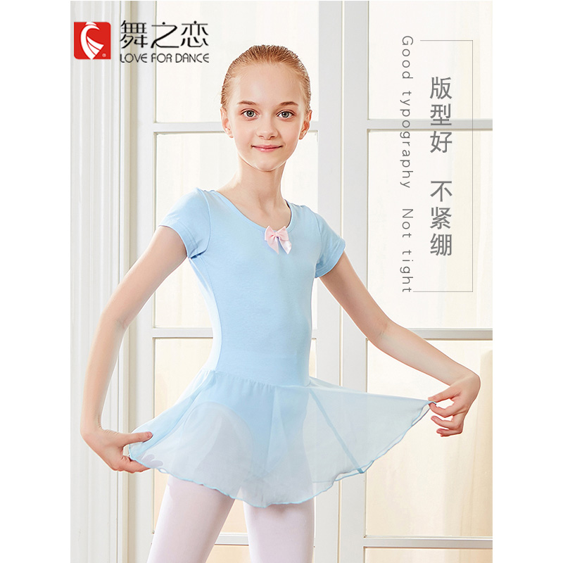 Dance Romance New Daughter Child Dance Exercises to open crotch Dark Ballet Snowspun Skirt Short Sleeve Chinese Dance Test Dress