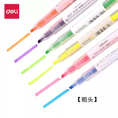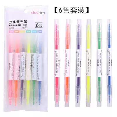 Deli double-headed fluorescent pen thickness Red orange yellow green blue purple 6-color candy color scribing pen set eye-catching standard study note mark work student fluorescent marker pen color focus S623