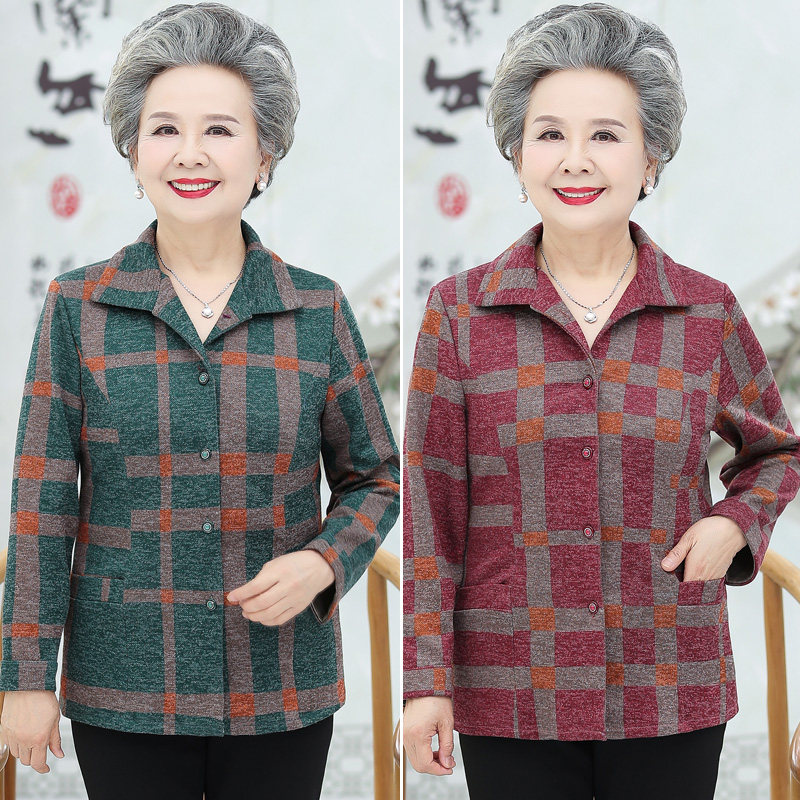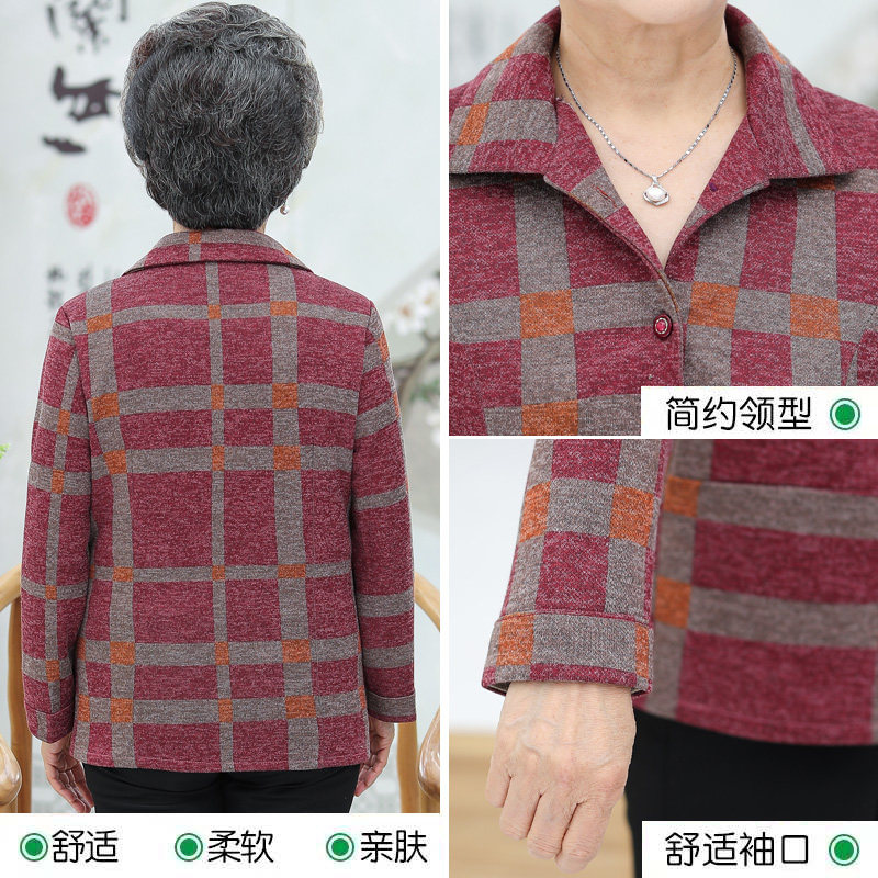 Elderly women's clothing autumn clothing checkered slim fit shirt 60-70-year-old 80 Grandmother Long sleeves mother-in-law capsized short