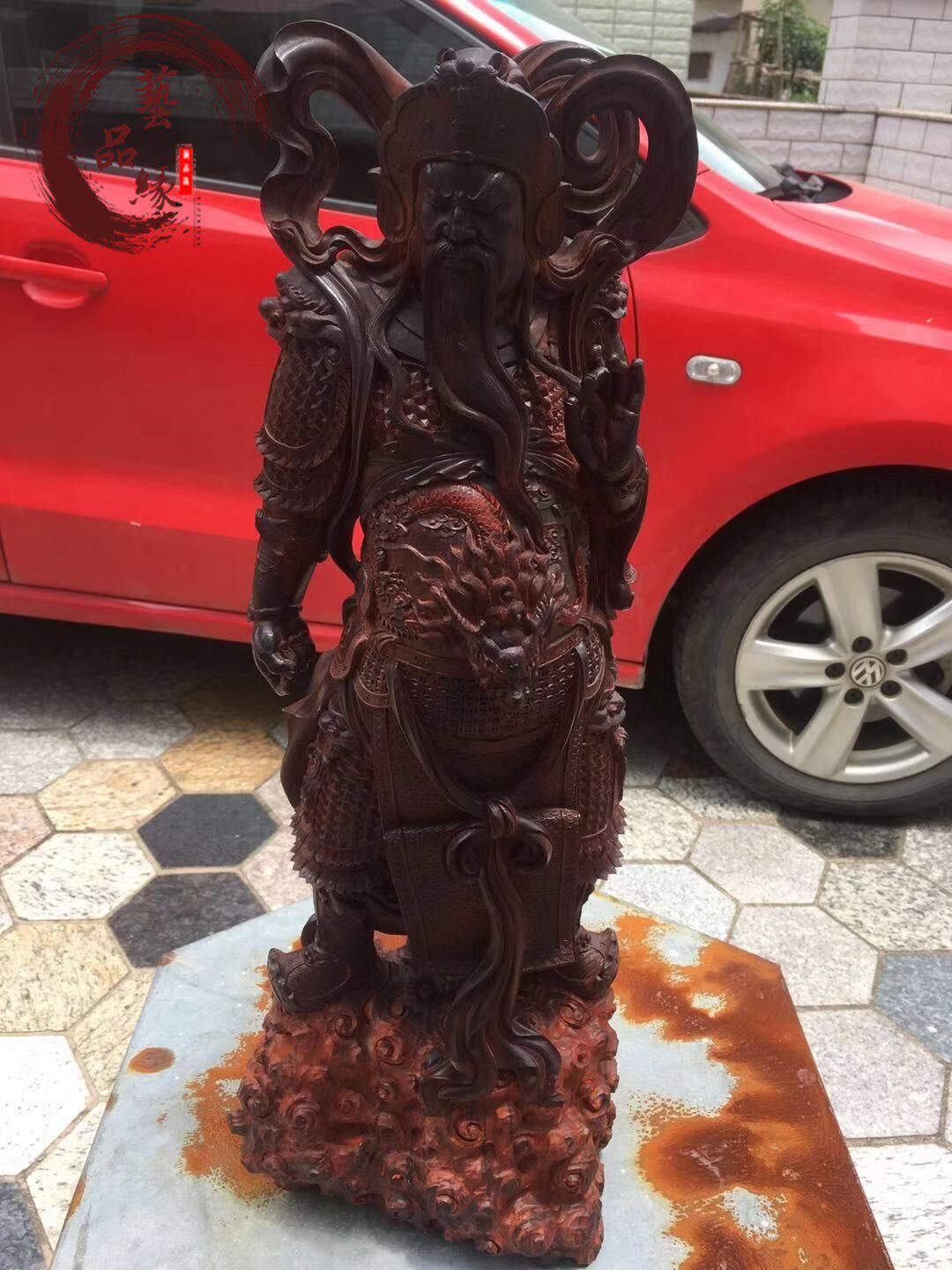 Indian lobular red sandalwood ornaments carving pieces woodcarving house demolition old material clearing knife crafts Guan Gong semi-finished products are not polished