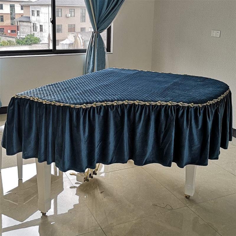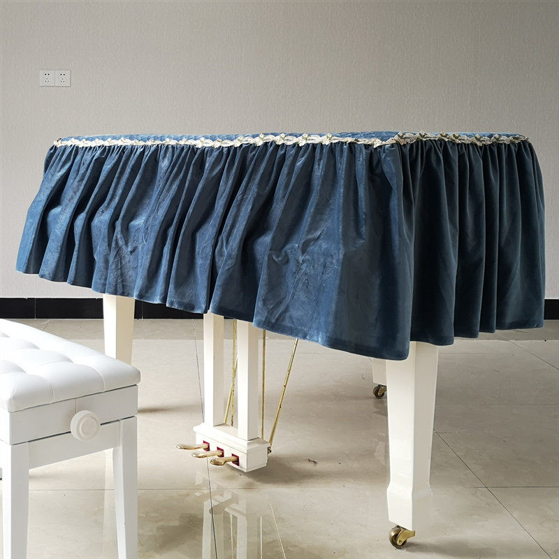 QiYan simple modern blue embossed cotton velvet grand piano cover piano cover piano cover dust cover piano cover