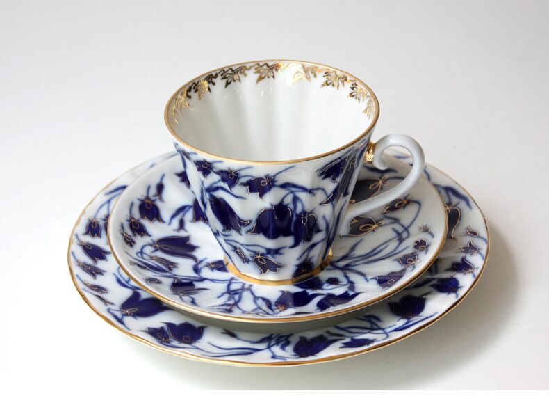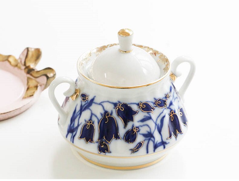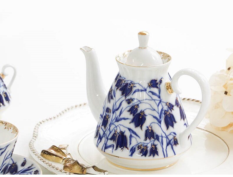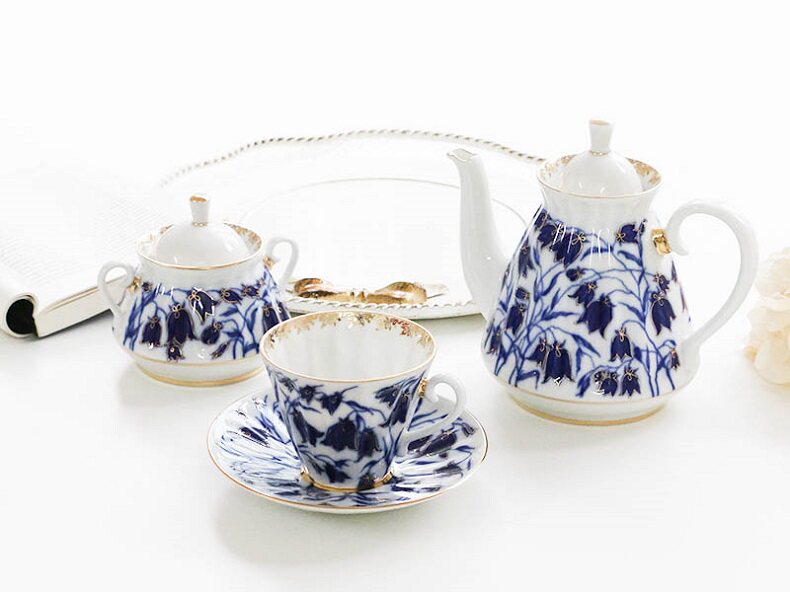 W1962 Russia imported Royal ceramic bellgrass series Bluebells under glaze tea cup saucer tea pot sugar jar
