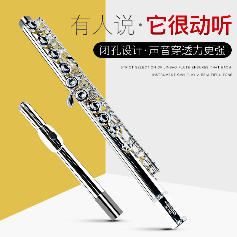 Jinbao 16-hole C-tone flute white copper plated silver-plated adult children beginner beginner student exam universal instrument