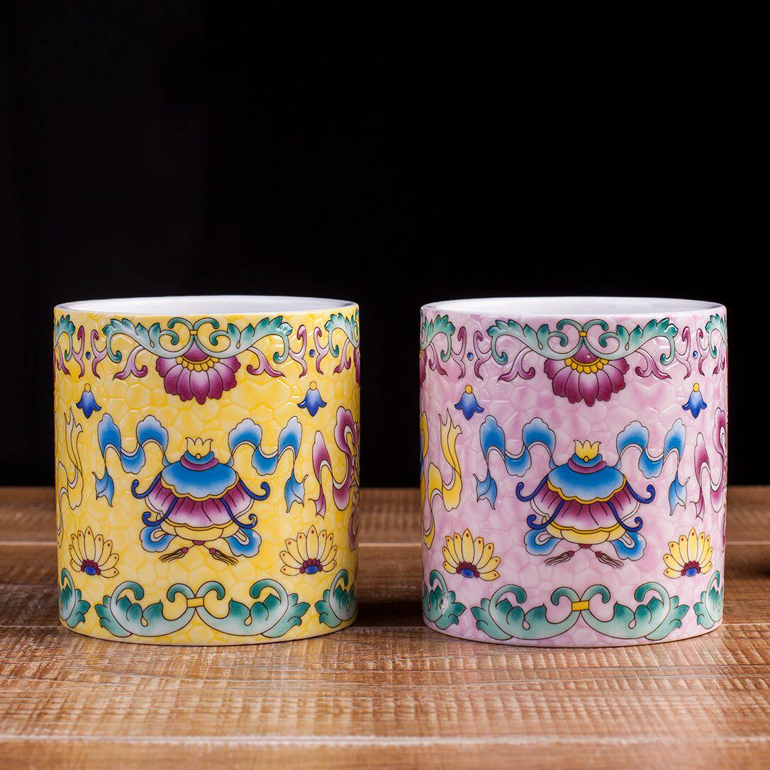 Jingdezhen Thickening Cupping and cupping for home Qinghua Ceramics Pen Holder Office Wenfang Supplies Release Brush Student Book House