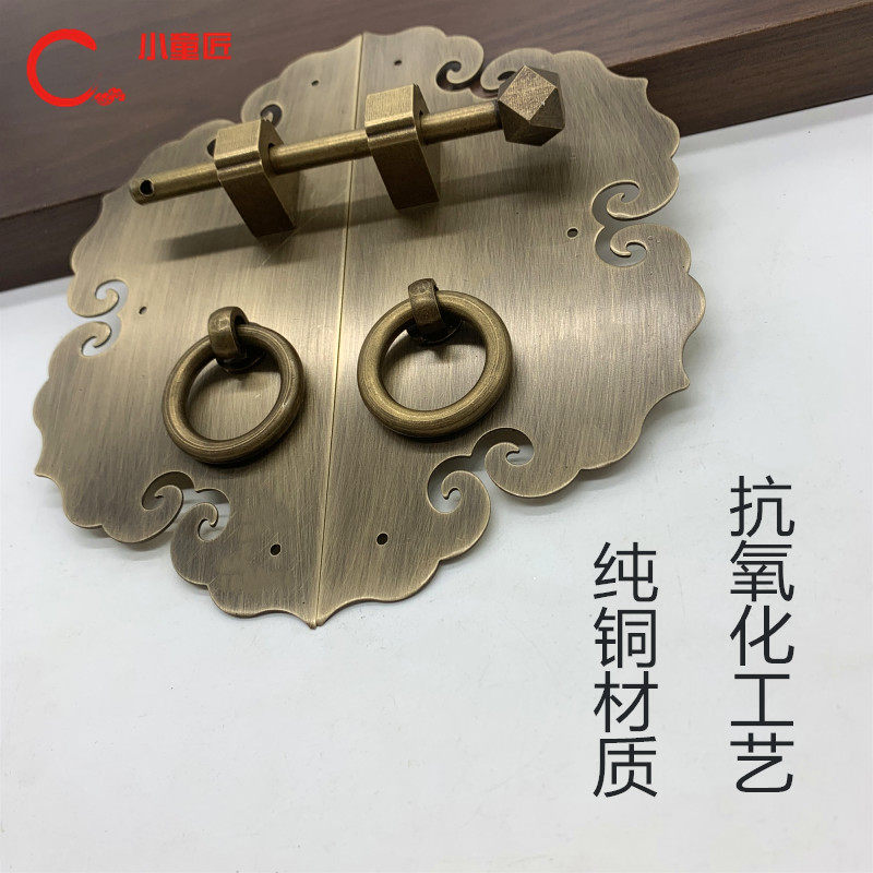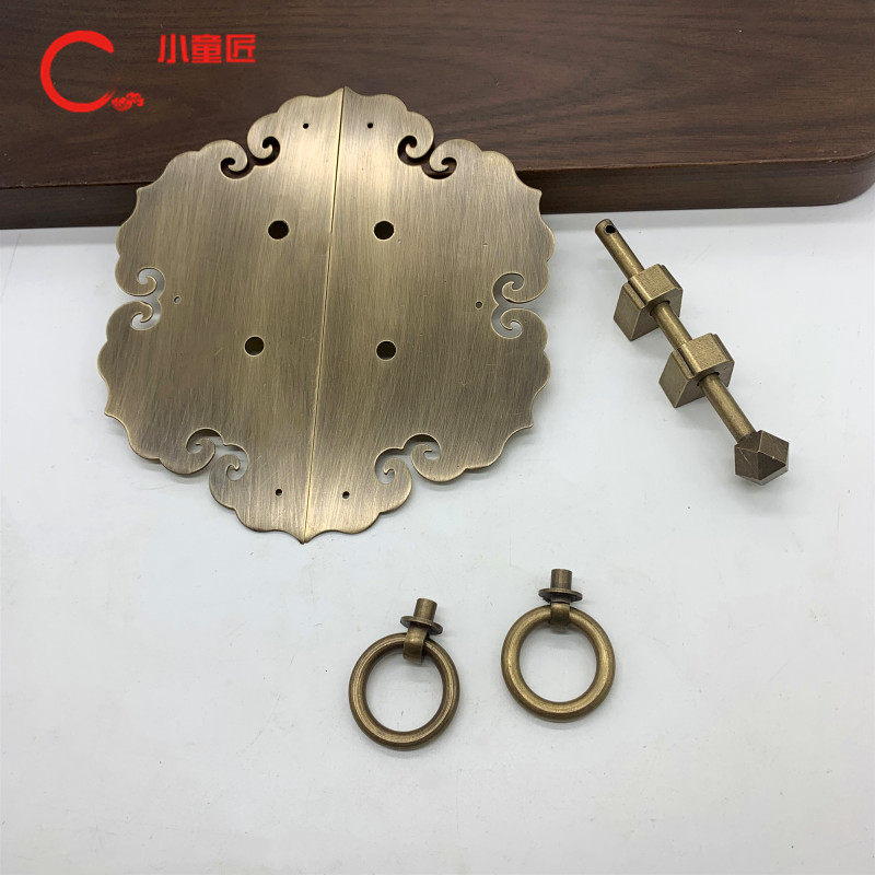 Chinese imitation antique pure copper handle card shoes with whole cabinet shoes cabinet wardrobe door full copper retro handle engraved with round handle door plate